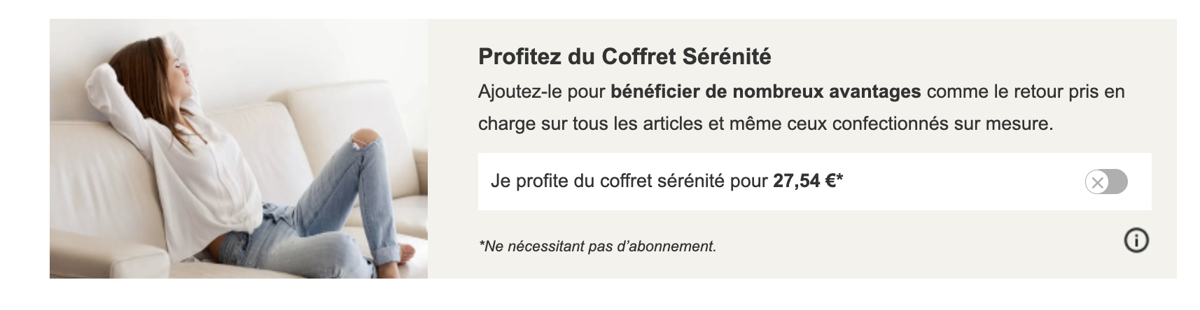Le montant du coffret sérénité est calculé automatiquement selon le contenu du panier:
